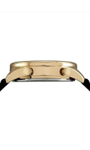 Seu mostrador digital com função calendário garante leitura rápida e precisa das informações, enquanto a caixa em metal dourado adiciona sofisticação ao visual.