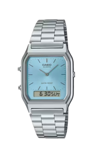 Compacto e leve, o AQ-230A-2A1MQY é indicado para pulsos entre 140 mm e 205 mm, sendo uma excelente opção para quem busca um relógio discreto, funcional e cheio de personalidade.