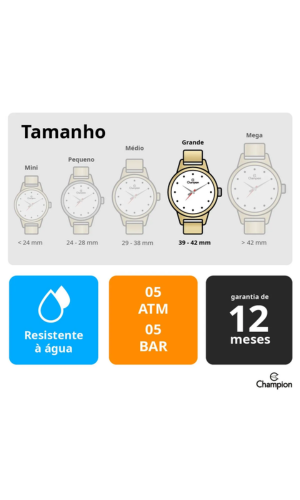 Produzido com caixa em metal no formato redondo e pulseira em aço azul, o relógio oferece resistência, durabilidade e conforto, garantindo um encaixe seguro ao pulso por meio do fecho com trava de pressão.