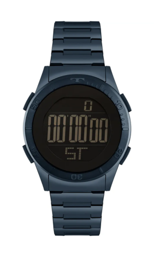 Fabricado com caixa e pulseira em aço inox, o relógio oferece estrutura robusta e durável, adequada para o uso contínuo. Seu formato redondo e mostrador digital garantem leitura clara das informações.