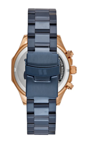 Sua caixa redonda de 44 mm em aço abriga um mostrador azul vibrante, que traz dinamismo e excelente leitura, aliado à função cronógrafo e marcações em indexes completos, mantendo o visual limpo, esportivo e funcional.