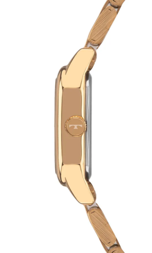 Produzido em aço, o relógio apresenta caixa e pulseira com estrutura resistente e acabamento dourado refinado. Sua construção garante durabilidade e excelente adaptação ao pulso.